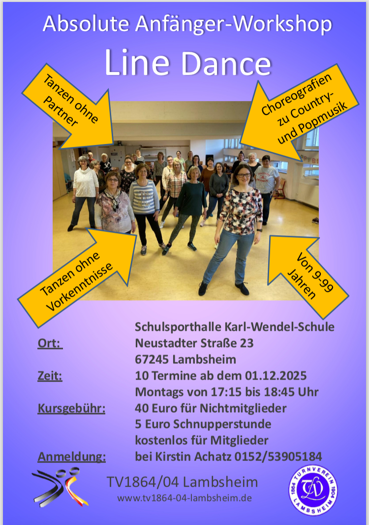 Neue Kurse für fortgeschrittene Anfänger Line Dance ab 11.11.2025 und Anfänger ab 01.12.2025